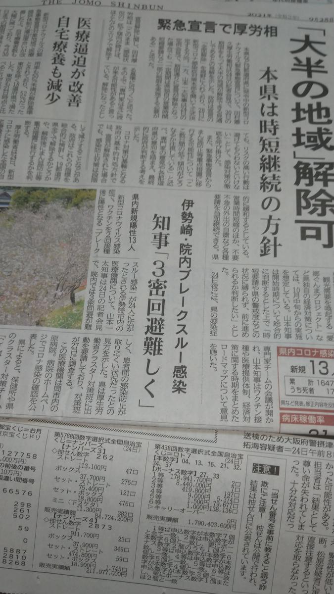 今朝の新聞をみたら、やっぱりブレークスルー感染記事になっていました( ̄▽ ̄;)