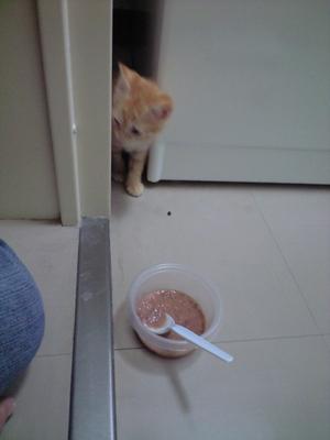 が、ネズミのおもちゃで誘ったら出て来てくれたので、