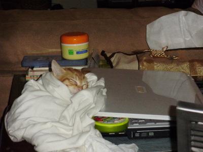 声を掛けたらわかったのか?パソコンの脇で寝始めました。