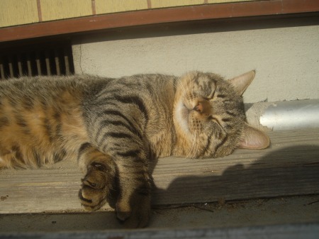 ぽっかぽかな、お外でお昼寝中のヒバちゃん。