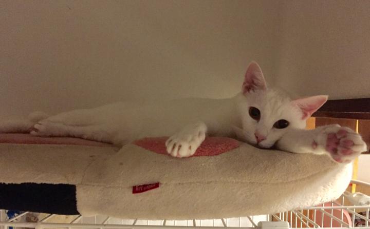 他の子達に食べられないよう、ゲージの中で食べてお利口にゃん👍