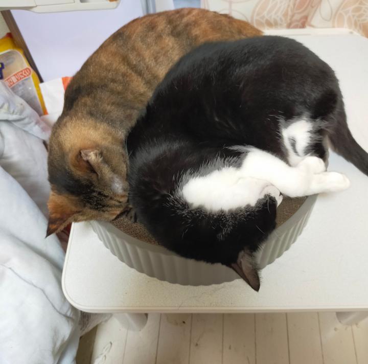 7月にきたサバ雌の茶々が、私と白黒クーニャンにベタベタなのは良いけど、このアンモニャイトは無理があるような…