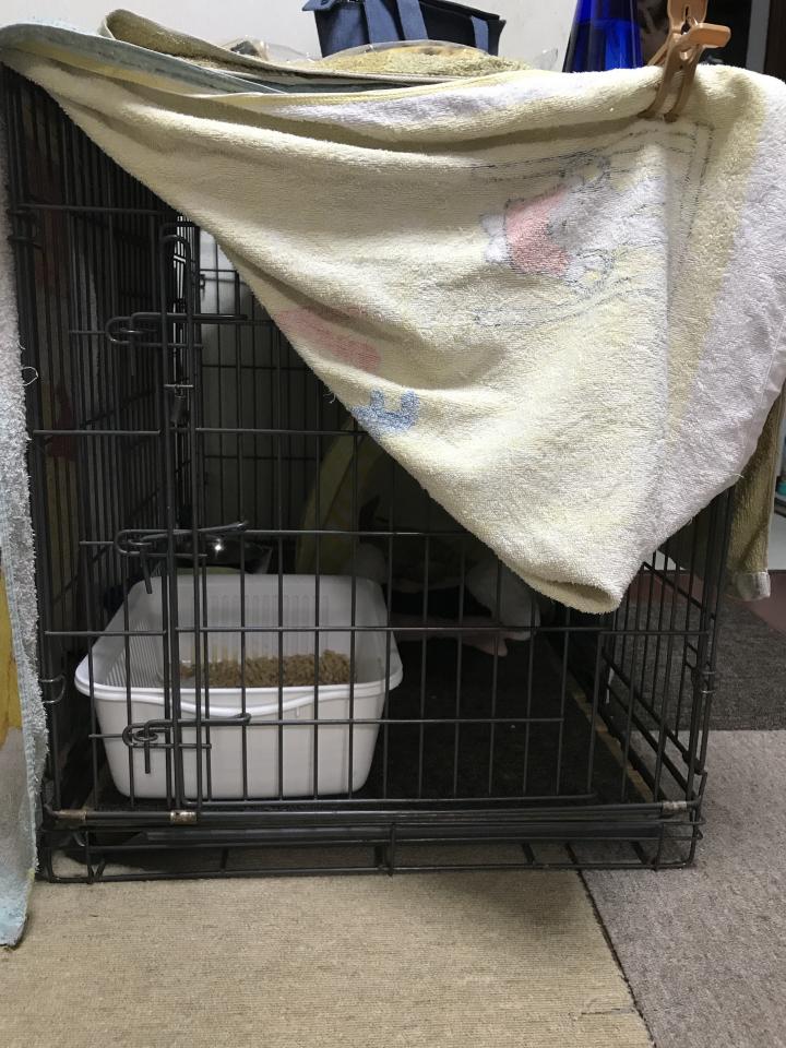 懐かしの琥珀が入ってだケージを二階の皆がいる部屋に😅