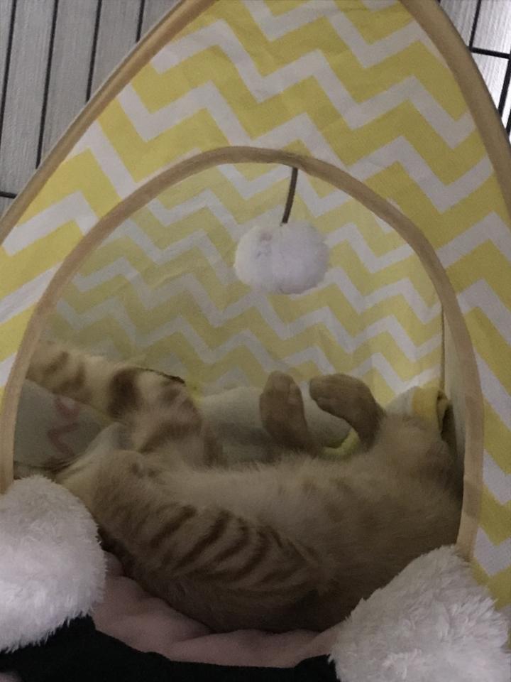 夕方にはへそ天で寝てました。🤣