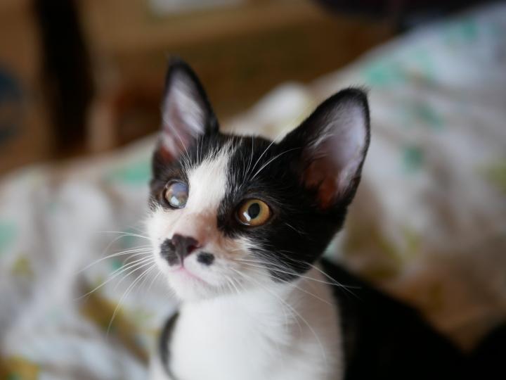 柵越しに手を伸ばして捕まえることができるくらい弱ってました。保護した時は片目が真っ白でしかも盛り上がってました。2ヶ月目薬を続けて、なんとかここまできれいに。「白いのが完全になくなることは難しいでしょう」とは言われているのですが、こうして写真を撮ると、うっすら下の目が見えてる!かーさん、うれしくて涙が出そう。