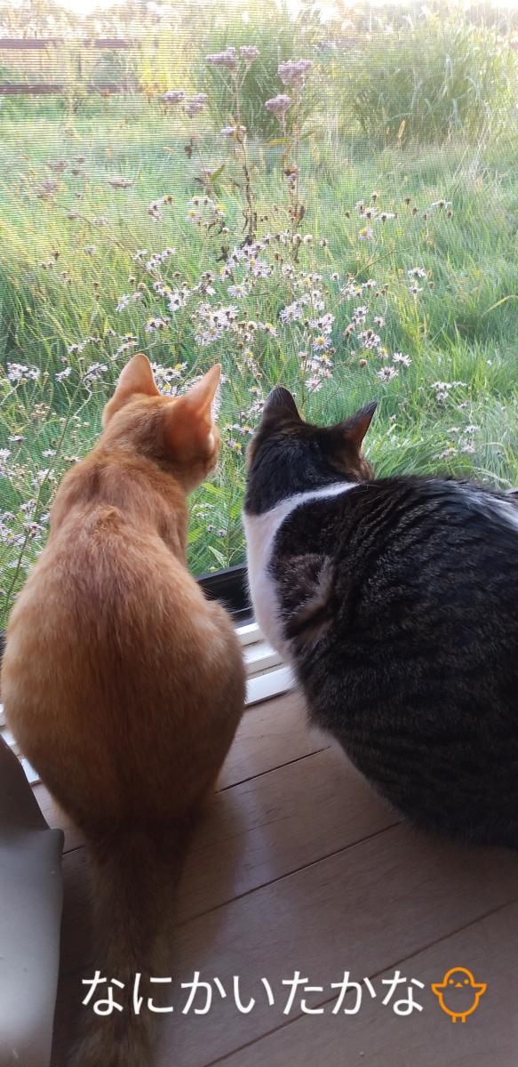 いつも面倒みてくれるパイセンと共に外をガン見👀