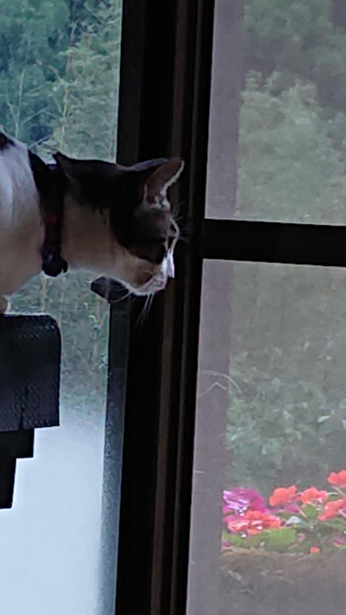 朝早くからリンちゃんは窓の外を眺めていた。何かを見つけたのか食い入るように見ている。多分クロちゃんでも通ったのか。最近マックロクロスケは見なくなった。