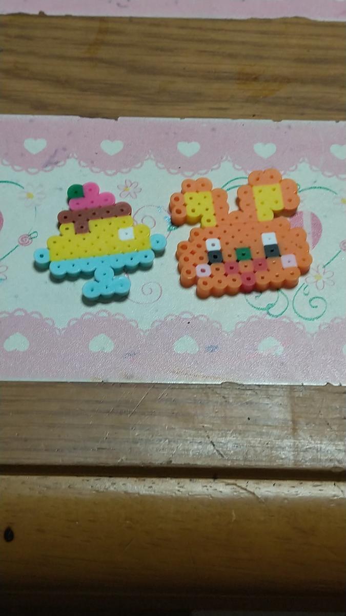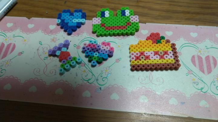 ビーズを並べて形を作ってアイロンで熱してキーホルダーを作るみたいなオモチャなんですが、やり出すと楽しくて沢山作りました✨
