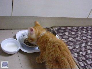 今朝からミルクも水もたくさん飲んで、フードもスプーン