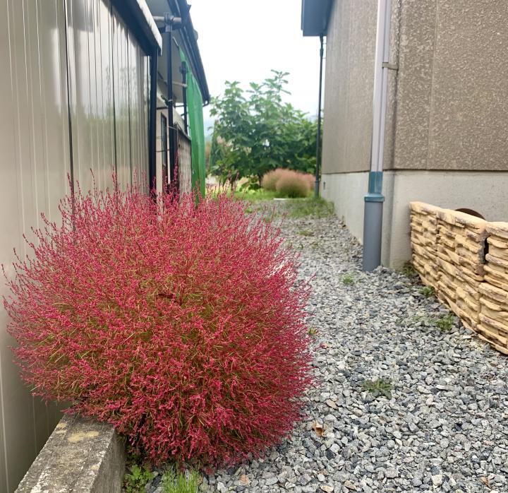 去年植えたコキアの種が飛んで庭のあちこちに根をおろし大きく育ったコキアちゃん。見事に真っ赤に秋の装いです😊