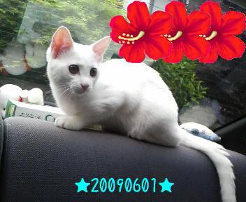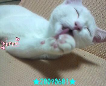にゃん介の目(特に右)が少し赤っぽいのと、