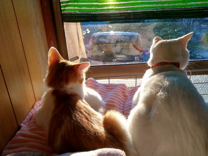 眠い目を擦り、居間に行ったら、💩君が、外におはよーって、飛び出てて