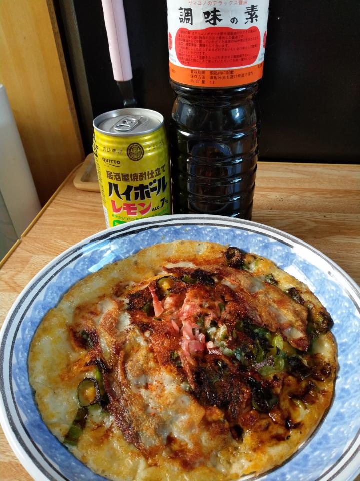 いつも通りに相方に焼いて貰って、朝お好み焼き、昼、おやつ、夕食とネギ焼きです