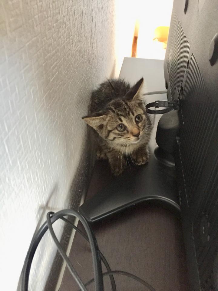 怖がってテレビ📺の後ろに隠れてます(´ω`)