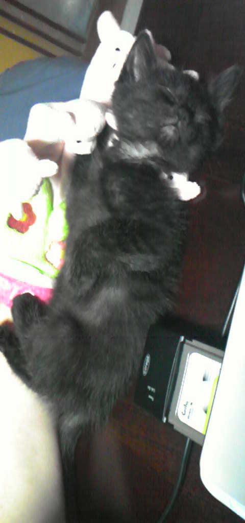 指を追いかけ、マウスポインターを追いかけ、PCの邪魔をして、そしていきなり爆睡