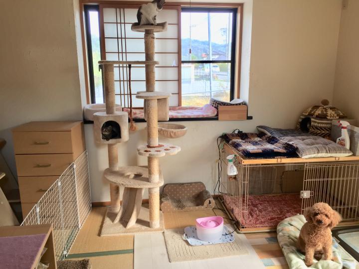 保護してしばらくは部屋をわけていましたが、血液検査も終わり今はフリーです。