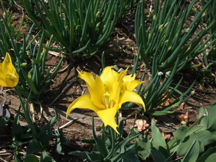 黄色のアラジン咲きチューリップ。