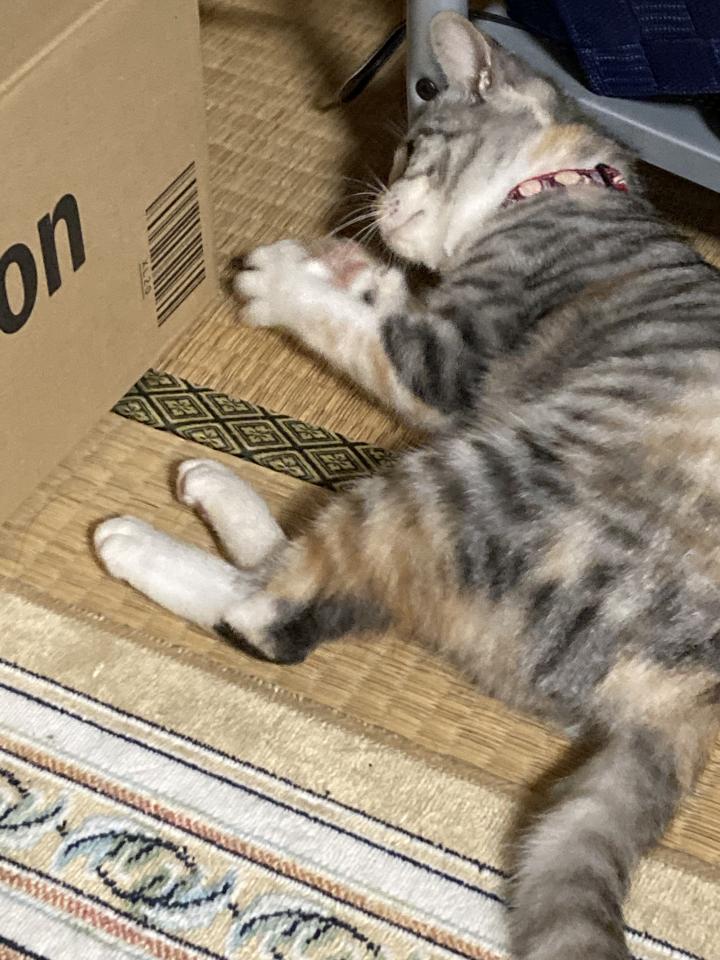 両親は昔の人間なので、掃除道具のはたきを猫じゃらし代わりに遊んでくれています。