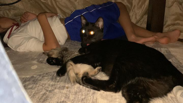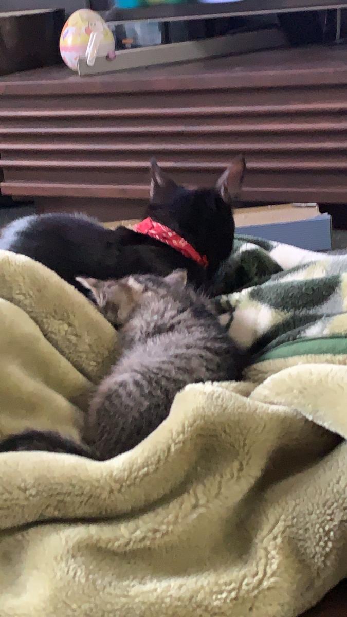 いずも兄ちゃんは、オモチャ来た〜❗️って感じだけど、たまにペロペロで寝かせ付けしてくれます。