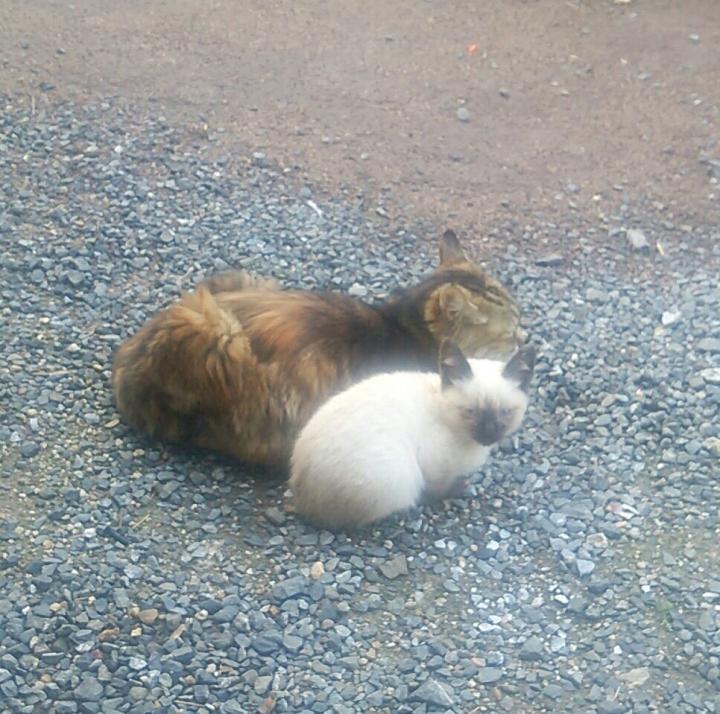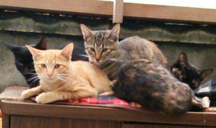 この子達も黒猫クーちゃんとキジ猫豆ルシちゃんは早くに何処かへ行ってしまって茶ト子とブチ子だけが残ってたのにブチ子は手術後、何処かへ行って帰らなくなったんよね〜。