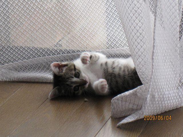 よくカーテンのそばで↓こんな格好してます(〃ー〃)