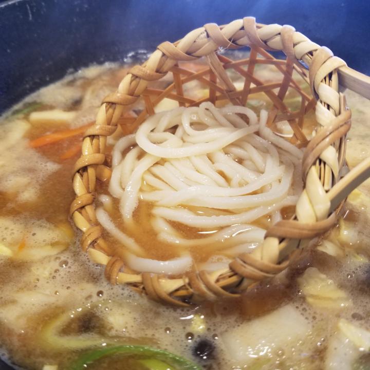 とうじ籠へうどんを入れて、、