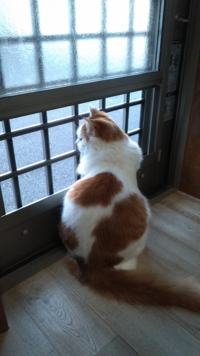 こうやって、勝手口の網戸越しに外を見るのが大好き。