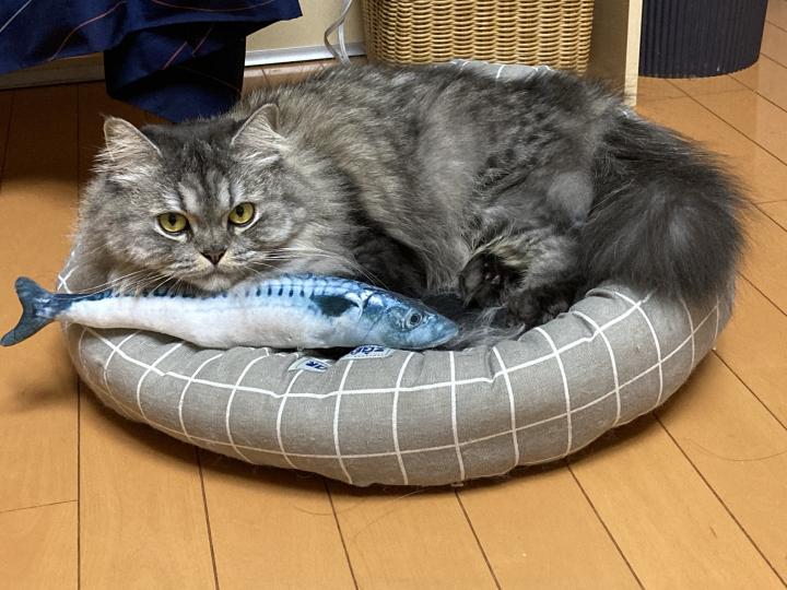 我が家に来て約半年経ってやっとですっ(≧∀≦)友達から頂いた、またたび入りお魚を添えて(笑)