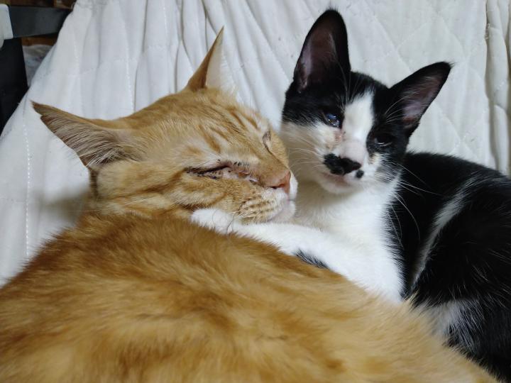 それにしてもはち子とみかんは頭のはちわれ具合もそっくり。寝顔の区別は難しい〜