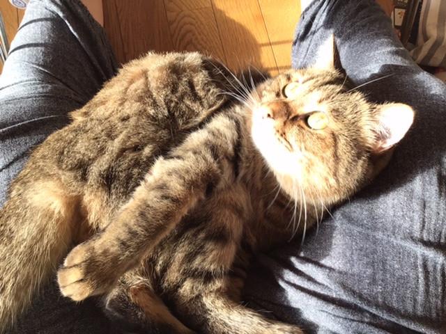 今日はご主人のお膝でお膝猫だにゃ。