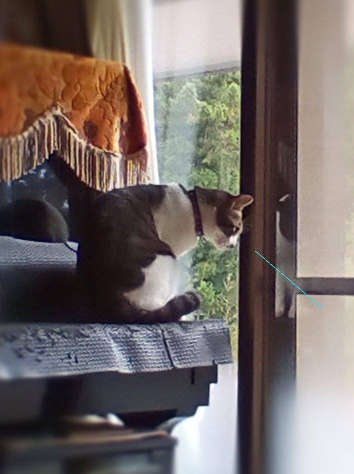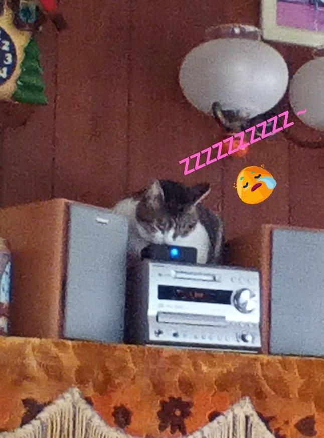 リンちゃんは暖かい場所を知っていて、だいたいファンヒーターの前にいるのだが暖まり過ぎると、また移動する。お日様が隠れてしまったので、ミニコンポの上で暖を取っている。