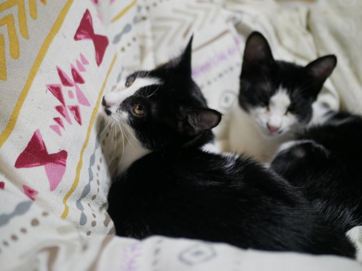 はち子と陣取ってるのは、布団の真ん中だよー。昨日も布団の中を出たり入ったりして遊んでたみかん。寝るときはちょっと端っこによけてくれると、かーさん嬉しいな😅