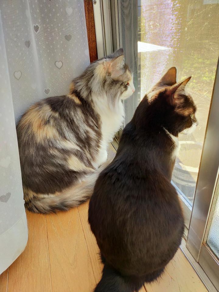 『2匹でお外見てる〜✨仲良くなってきたんじゃないの〜?😆』