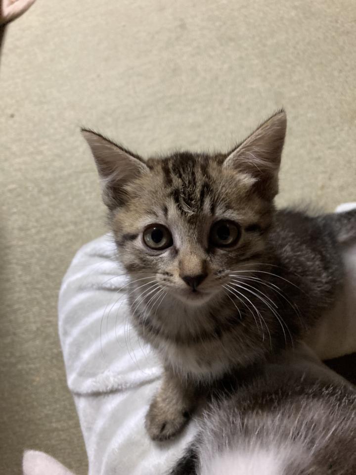 キジトラの女の子。ママ猫の赤ちゃんの時にそっくり!