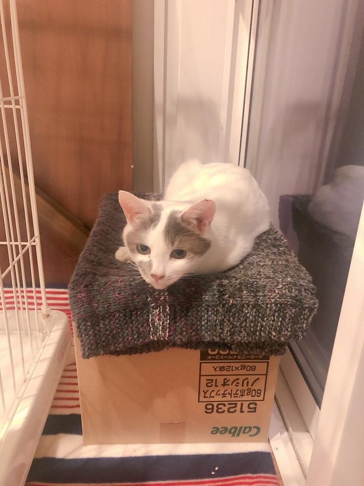 今日のハッチは即席ダンボールのベッドが気に入ったらしくこちらで寝ています✨