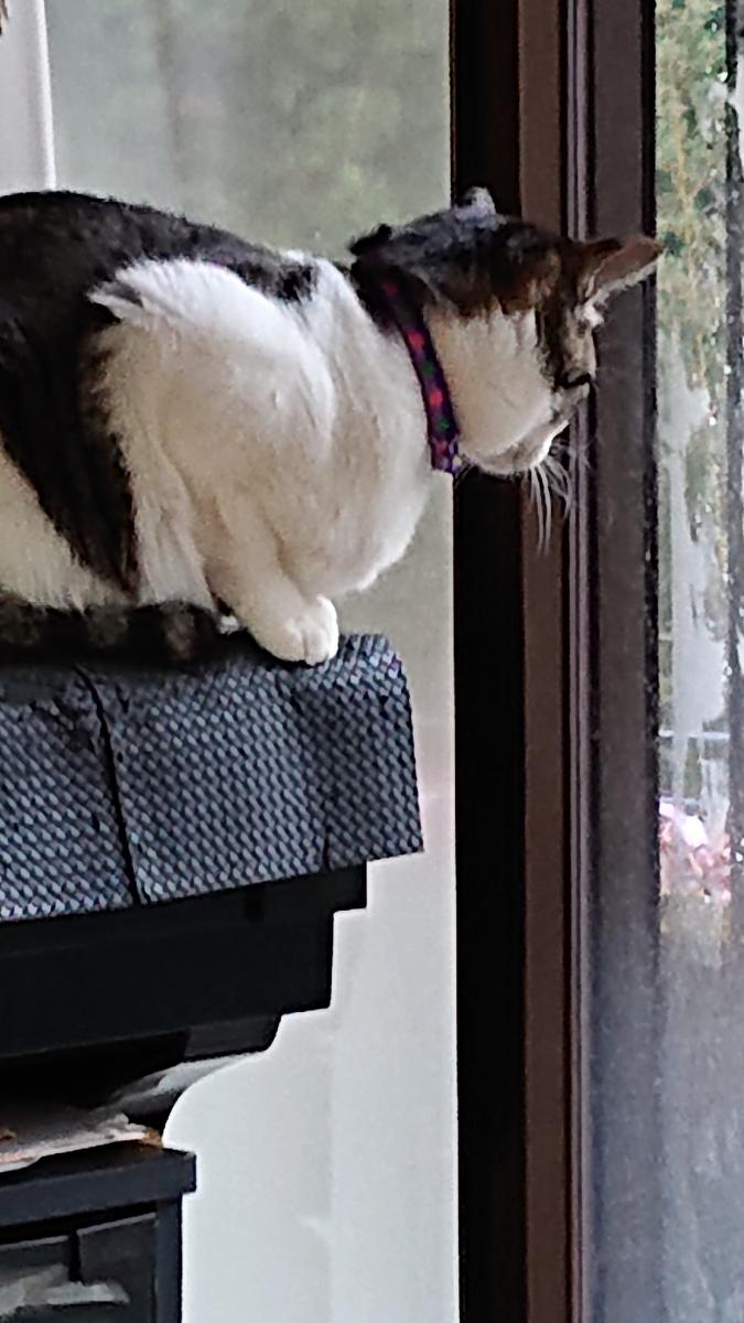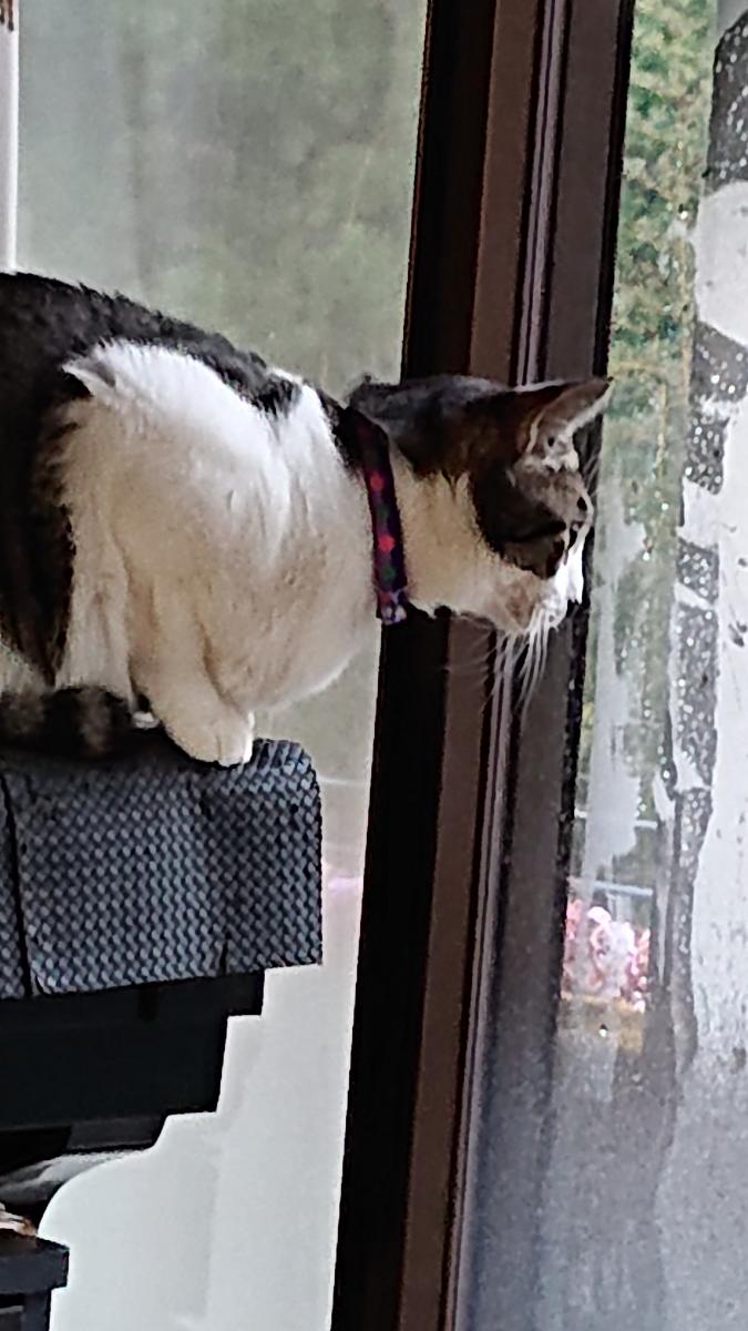 外を眺めながら早く来ないかと待っているリンちゃんでした。