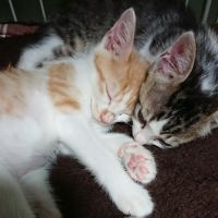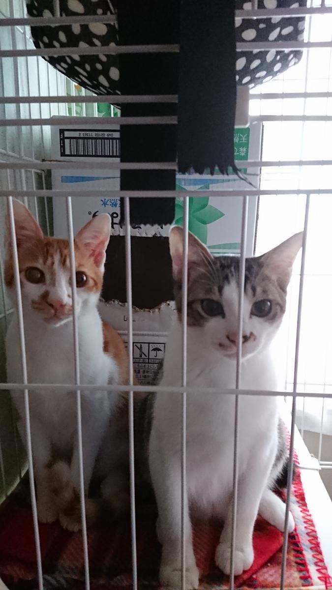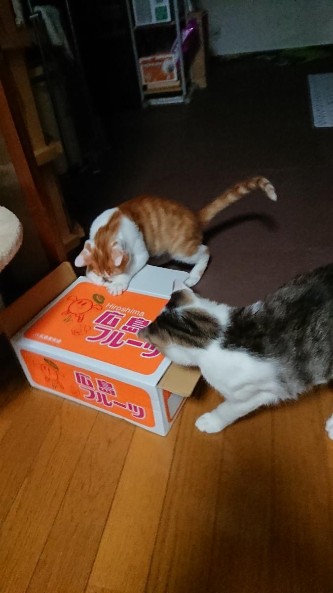 段ボールの底はモフモフの布が入っているので、モミモミする瞑想?に入れるみたいで何が楽しいのか2匹一緒に入っている時もあります。