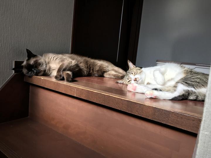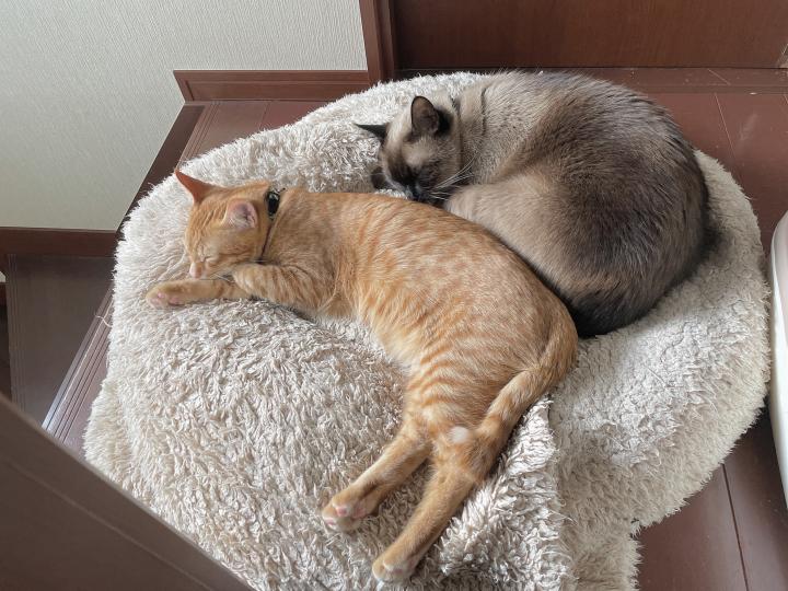 小虎が寝てる時は二人で日向ぼっこしてます