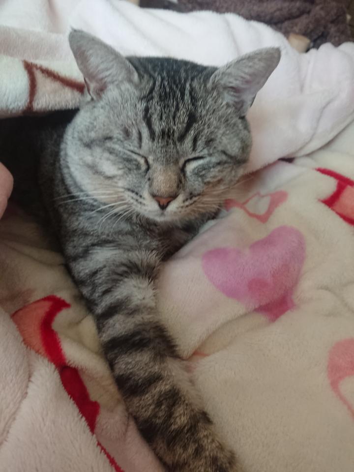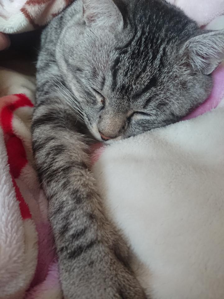 最近、私の布団に来るようになったしまちゃん。まだ少し遠慮気味だけど、お外ではゆっくり眠る事もできなかっただろうから、安心して休んで欲しい