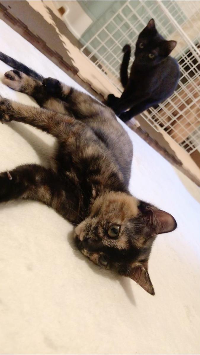 くつろぐほっぷくんと凝視するむぎちゃん😂