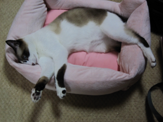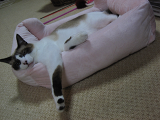 このネコ用ベッドはチーが赤ちゃんだった頃、まだ女子♀だと