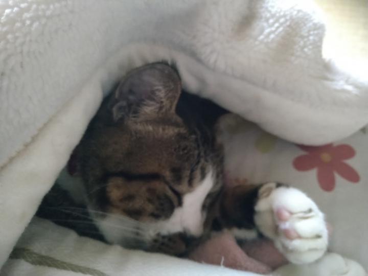 シマシマは右側しか入らず、もう少し寒くなると左側にクロが入ってきます。あったかいけど寝返りはうてません(^_^;)