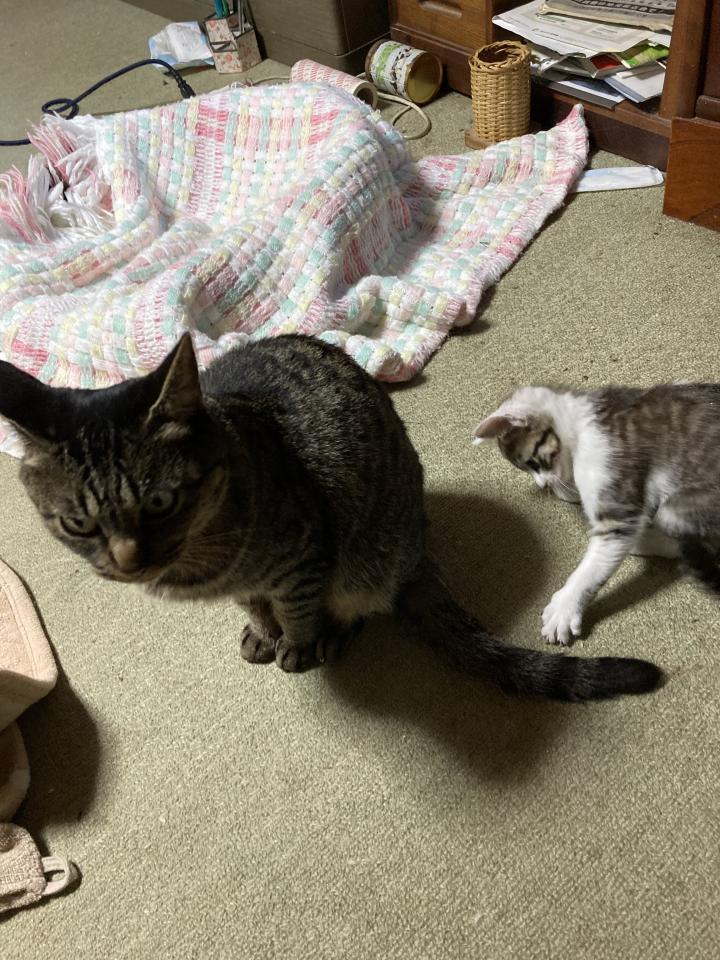 母猫ルナは、仔猫ちゃん2匹と離れ