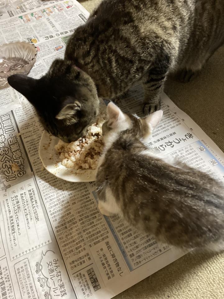 ママ猫ルナは、ゆめちゃんが食べるのを