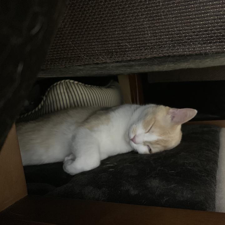 そのうち日も暮れて一旦家に戻ったら、蘭子ちゃん、部屋で毛繕いしながらくつろいでいるという。