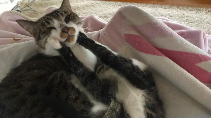 特に抵抗もせずされるがままってことが多いので、顔に傷が絶えません😂