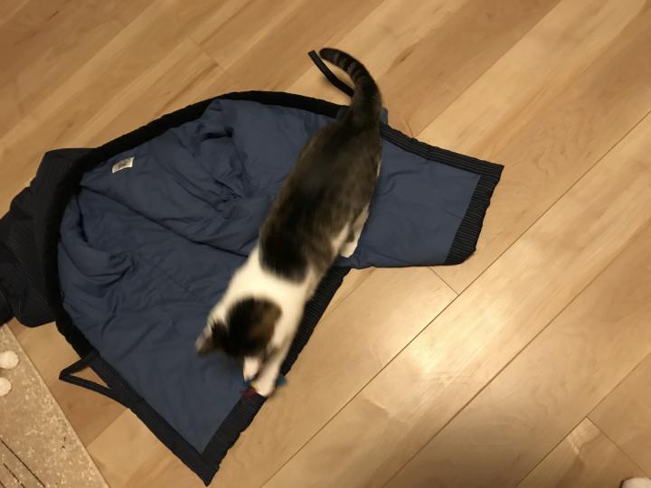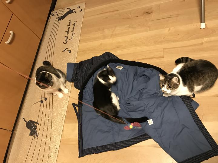 なぜか脱ぎ捨てた(わざわざ脱いで床に敷いた)半纏の上でじゃれる遊びです