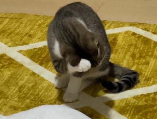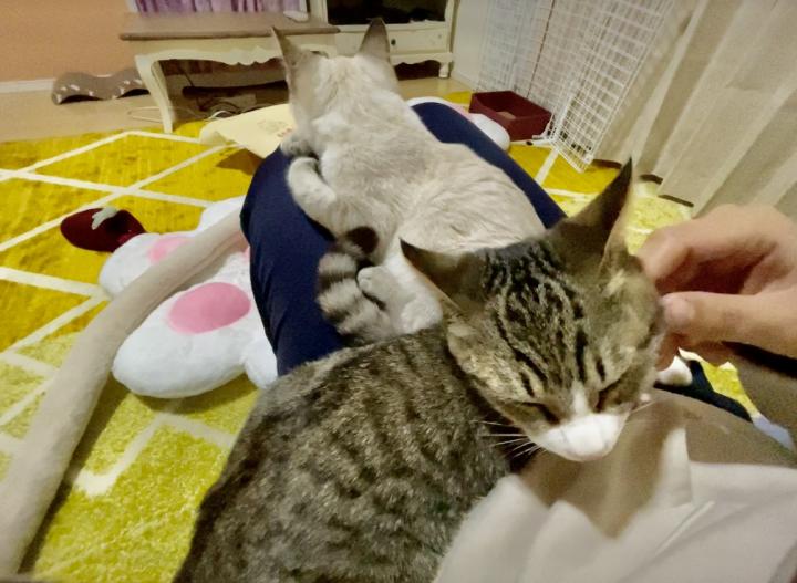 猫ちゃんズはご飯を食べたて→おトイレタイム→お遊び運動会→毛づくろい→お膝の上でゴロゴロタイムのルーティン化しています🐾