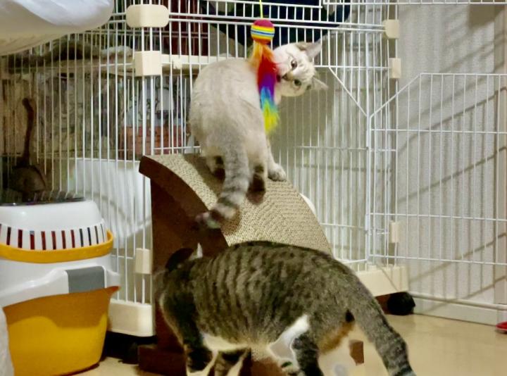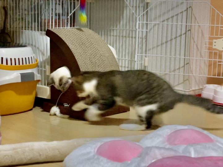 ベルはゴロゴロ、ボーはウゥーと唸りながらそれぞれの時間を過ごしています🐾