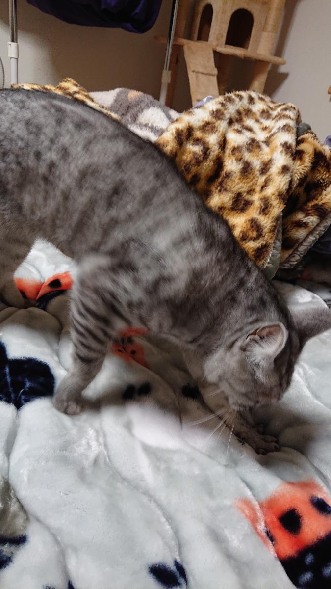 寒くなったのであったかフカフカ敷き毛布をベッドに敷いたらなぜか突然掘り出すあんちゃん。
